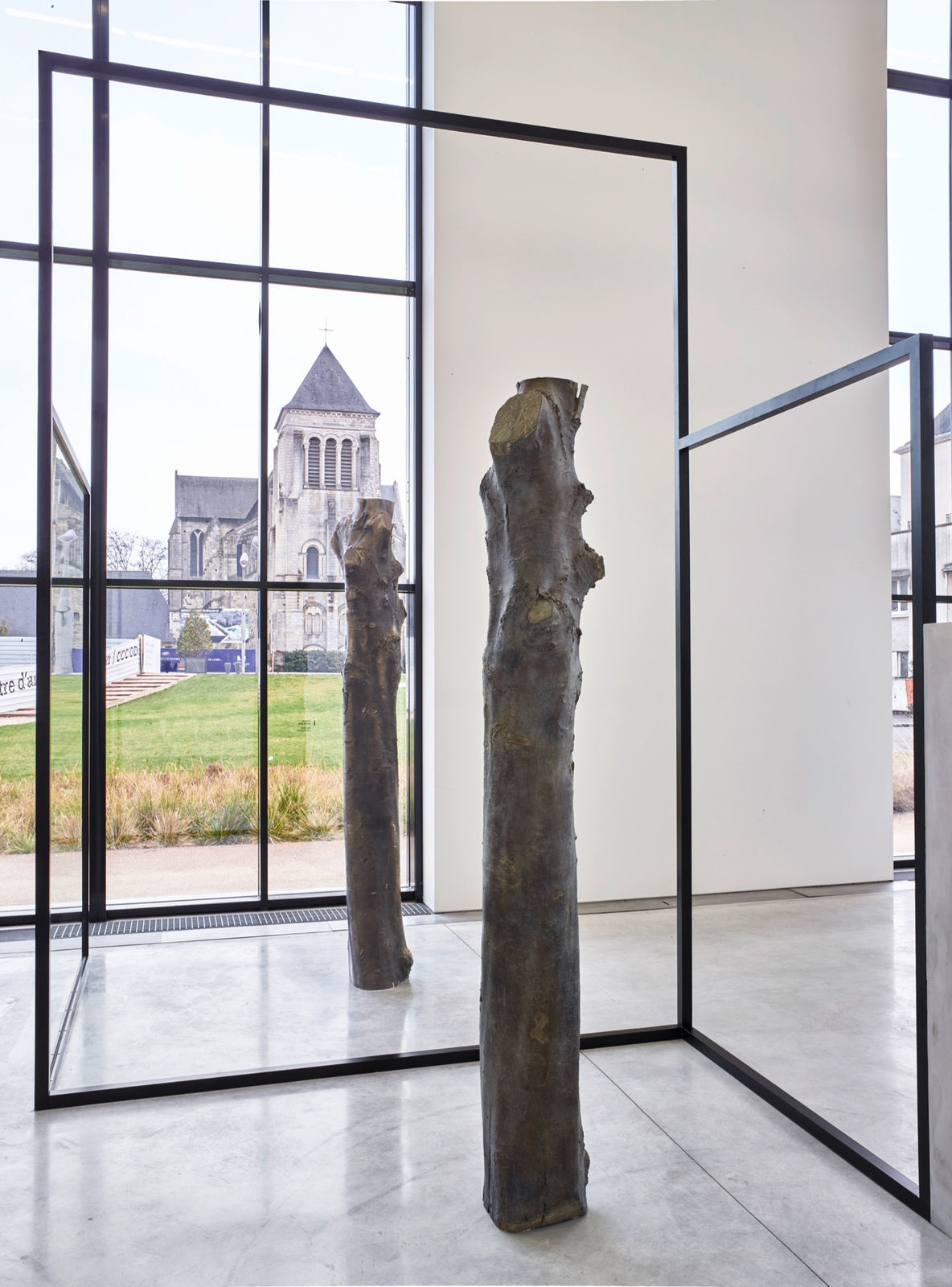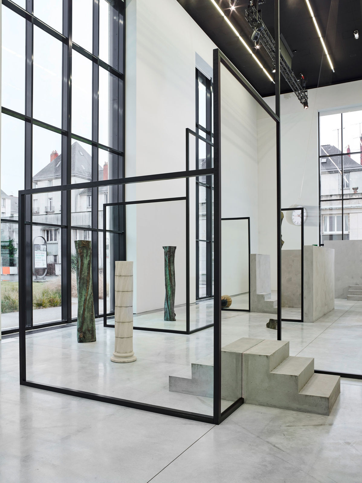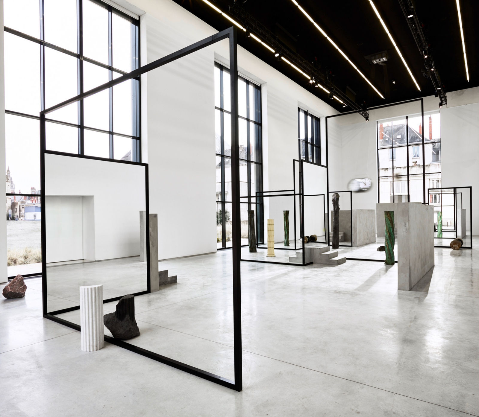 Polish artist Alicja Kwade presents a "The Resting Thought," a monumental new sculptural installation, specifically designed for the Nave of the CCC OD. Through sculptures which probe matter, established value systems, objects and our perception of them, Alicja Kwade's art explores notions of time and space. A labyrinthine structure composed of concrete walls, mirrors, empty metal frames and sculptures, the work invites the spectator to consider the artist's poetic and philosophical questions.