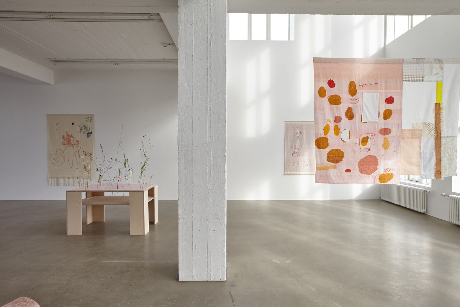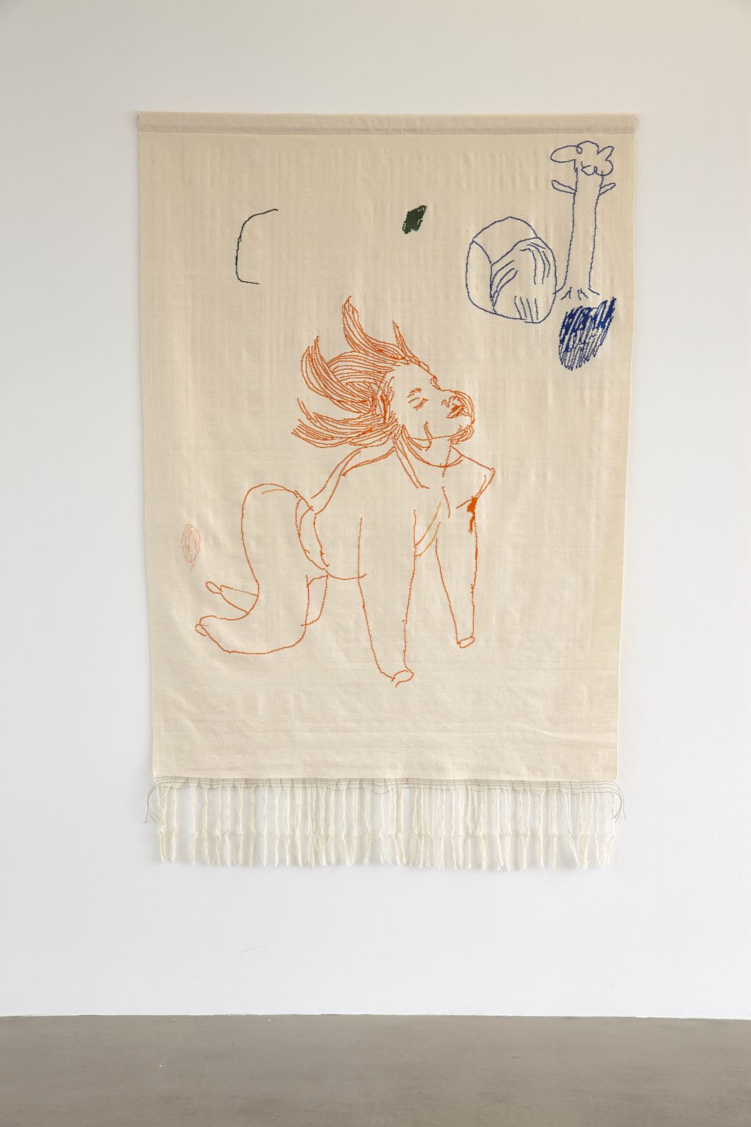 Arna Óttarsdóttir’s (b.1986) practice explores the traditional methods of the loom, creating elaborate tapestries. The visual source derives from her sketchbooks, where she does not select the final motif based on refined finish, but rather on the possibility of future exploration.