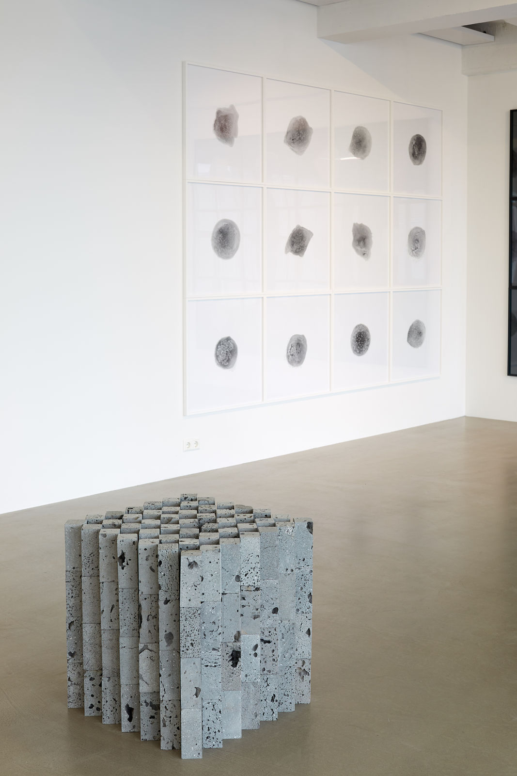 Between mountain and tide traces a record through landscape, evidence of Ragna's meticulous relation to materials found in nature. Confronted by the remains of quiet volcanoes, the evolution of shells washed up out of the sea or multiples of cut lava, these materials mark an innate compulsion to see, feel, collect and contain before being able to understand. They form microcosms for the world – not in the least Ragna´s – and make effort to grasp it.
